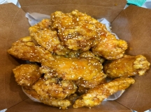 Crispy Chicken, Lettuce, Tomato, Shredded Cheddar Cheese, Ranch, and Thousand Island.